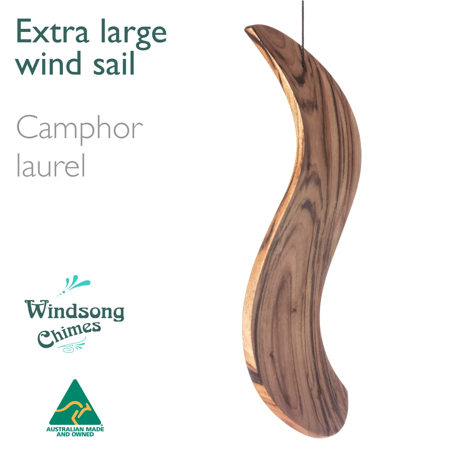 This camphor laurel sail is handcrafted into a 3D curved S shape band sawn from solid blocks, ensuring it retains it's shape and catches the wind long into the future. It measures approximately 25cm x 10cm.