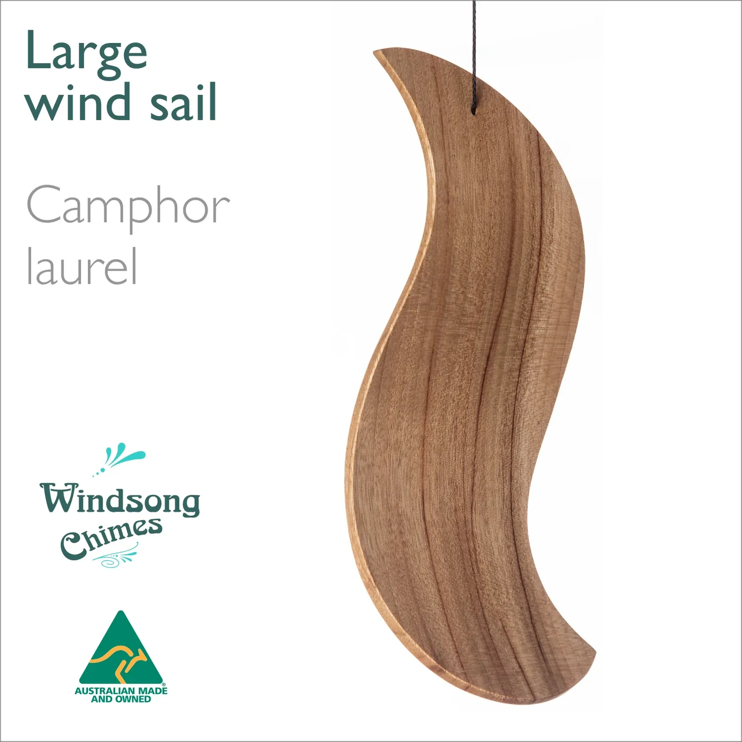 This camphor laurel sail is handcrafted into a 3D curved S shape band sawn from solid blocks, ensuring it retains it's shape and catches the wind long into the future. It measures approximately 22 cm x 9 cm.